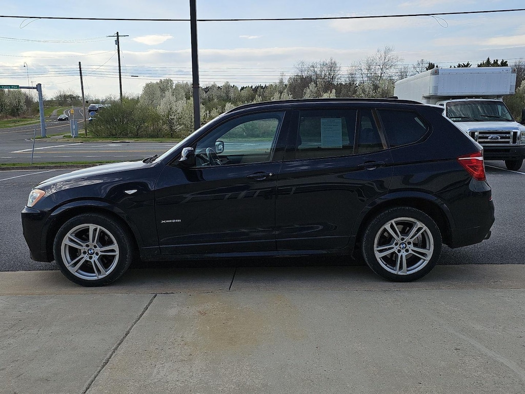 For buyers searching for a luxury AWD SUV with turbo performance, BMW X3 with navigation, premium interior, sporty handling, and all-weather capability, this AS-IS 2013 BMW X3 xDrive28i delivers driving excitement, refinement, and value in one well-engineered package. Important Package and Feature Information2.0L dual overhead cam (DOHC), 16-valve, 240-hp inline 4-cylinder engine -inc: twinpower turbo technology, high precision direct injection, valvetronic, double-VANOS steplessly variable valve timing, auto start/stop function, 8-speed steptronic automatic transmission -inc: sport & manual shift modes, adaptive transmission control, Electronic throttle control, xDrive all-wheel-drive system, Front & rear anti-roll (stabilizer) bars, Gas-pressure shock absorbers, Servotronic vehicle-speed-sensitive pwr steering, Trailer hitch prewiring, 4-wheel ventilated anti-lock disc brakes w/Dynamic Brake Control, Brake Energy Regeneration, Chrome tailpipe finishers, Halogen free-form foglights, Privacy glass, Rain-sensing windshield wipers w/automatic headlight control, Door handles in matching body color, Pwr tailgate, HD radio w/multicast FM station reception, Pre-wiring for satellite radio, Front center console armrest, Tilt/telescopic steering wheel column, iDrive system w/on-board computer & controller -inc: (8) programmable memory buttons, Vehicle Key Memory, Front & rear floor mats, Anti-theft alarm system, Automatic climate control w/micro-filter & air recirculation, Rear-window defroster, Dual cupholders, Silver Matte trim, High-gloss black instrument panel, Ambiance light package -inc: front exit lights, front/rear map-reading, footwell & visor-mirror lights, Dynamic stability control -inc: brake drying, brake stand-by, start-off assistant & brake fade compensation, Hill Descent Control, Crash sensor that activates battery safety terminal disconnect of alternator -inc: fuel pump & starter from battery; automatically unlocks doors, & turns on hazard & interior lights, Daytime Running Lights, Driver & front passenger airbag supplemental restraint system -inc: advanced technology: dual-threshold, dual-stage deployment; & front-passenger seat sensors designed to prevent unnecessary airbag deployment, Front safety belts w/automatic pretensioners, Automatic-locking retractors (ALR) on all passenger-seat safety belts (for installation of child-restraint seats), LATCH for child-restraint safety-seat installation, Child safety rear door locks, Driving dynamics control w/eco pro, Tire Pressure Monitor, Active Head Restraints in front seats, Head protection system (HPS), front & rear