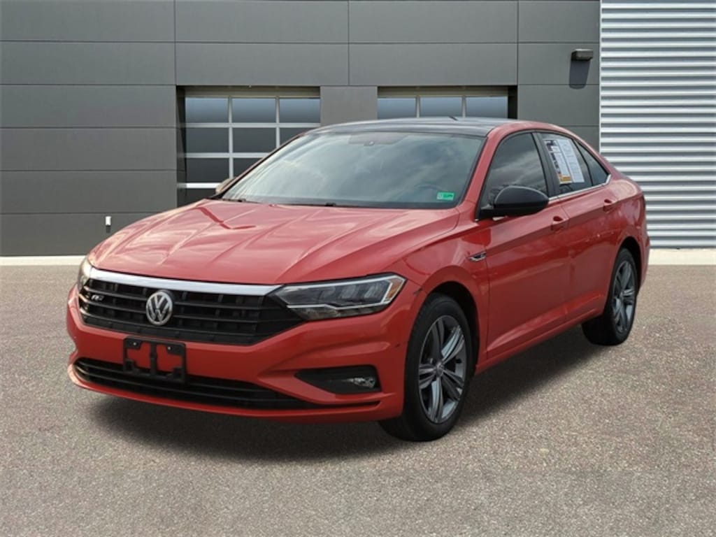 - The 2019 VW Jetta R-Line features 147hp XDS differential 17" wheels gloss-black trim two-tone leatherette heated seats panoramic roof and blind-spot monitor